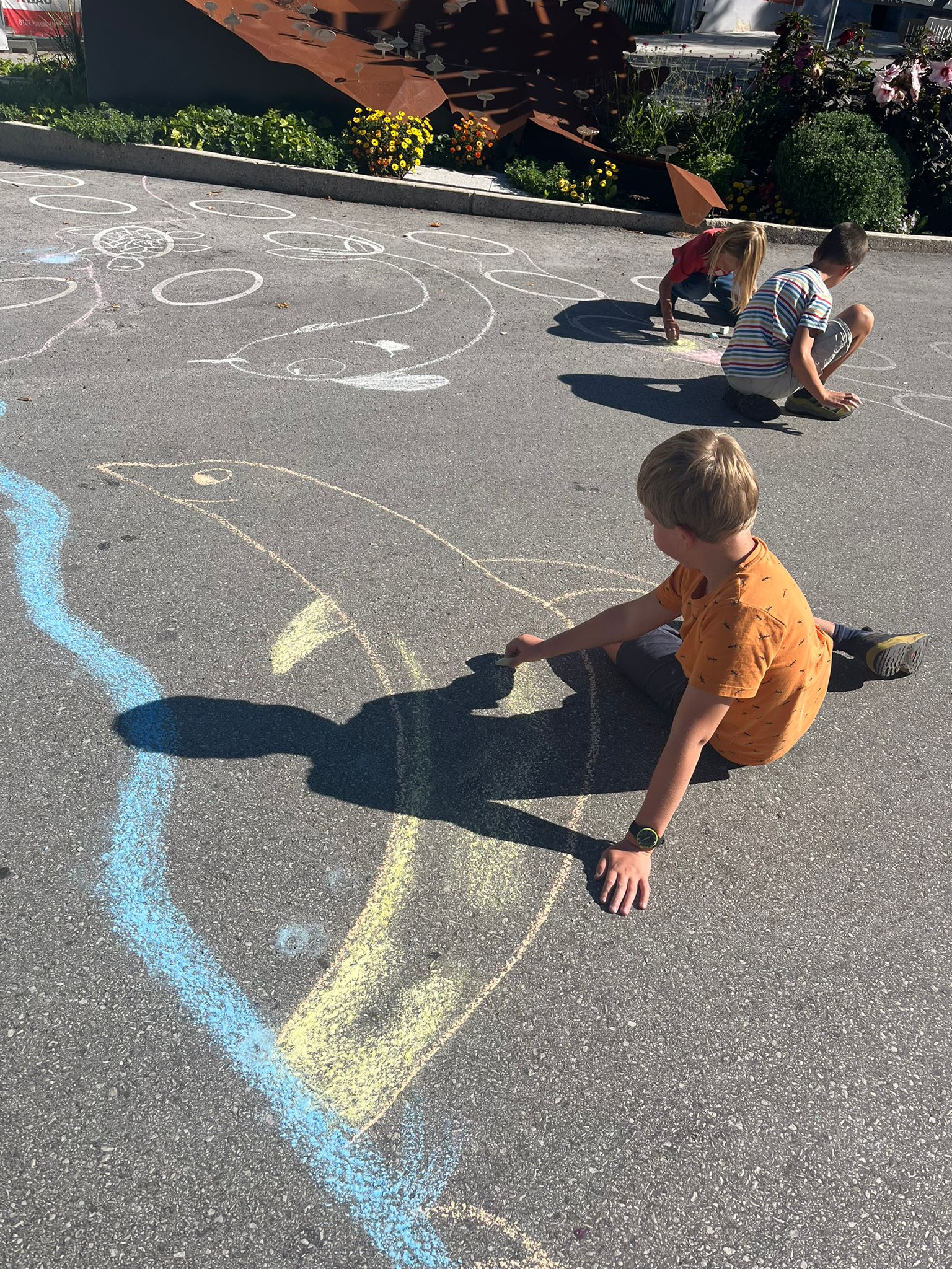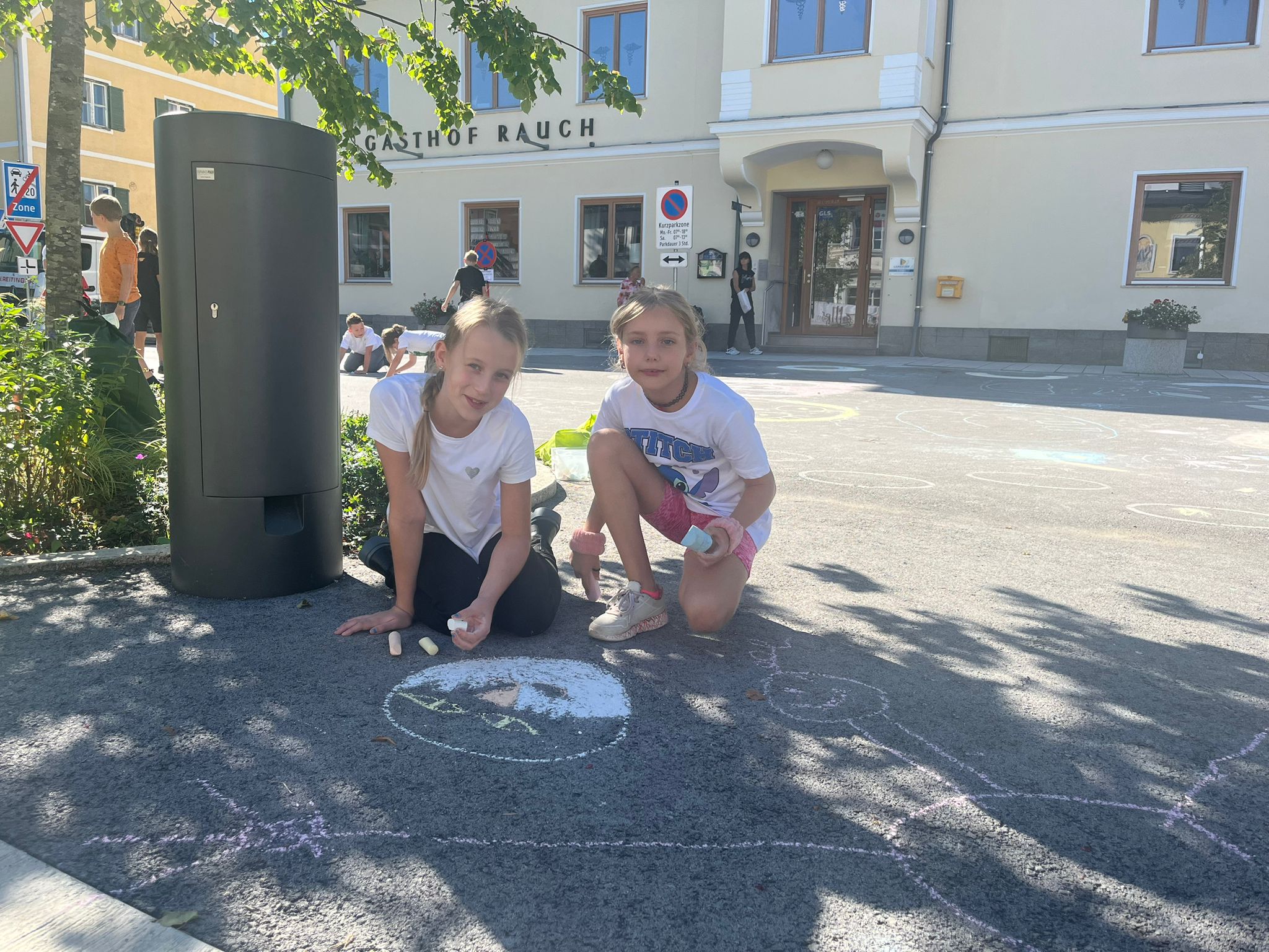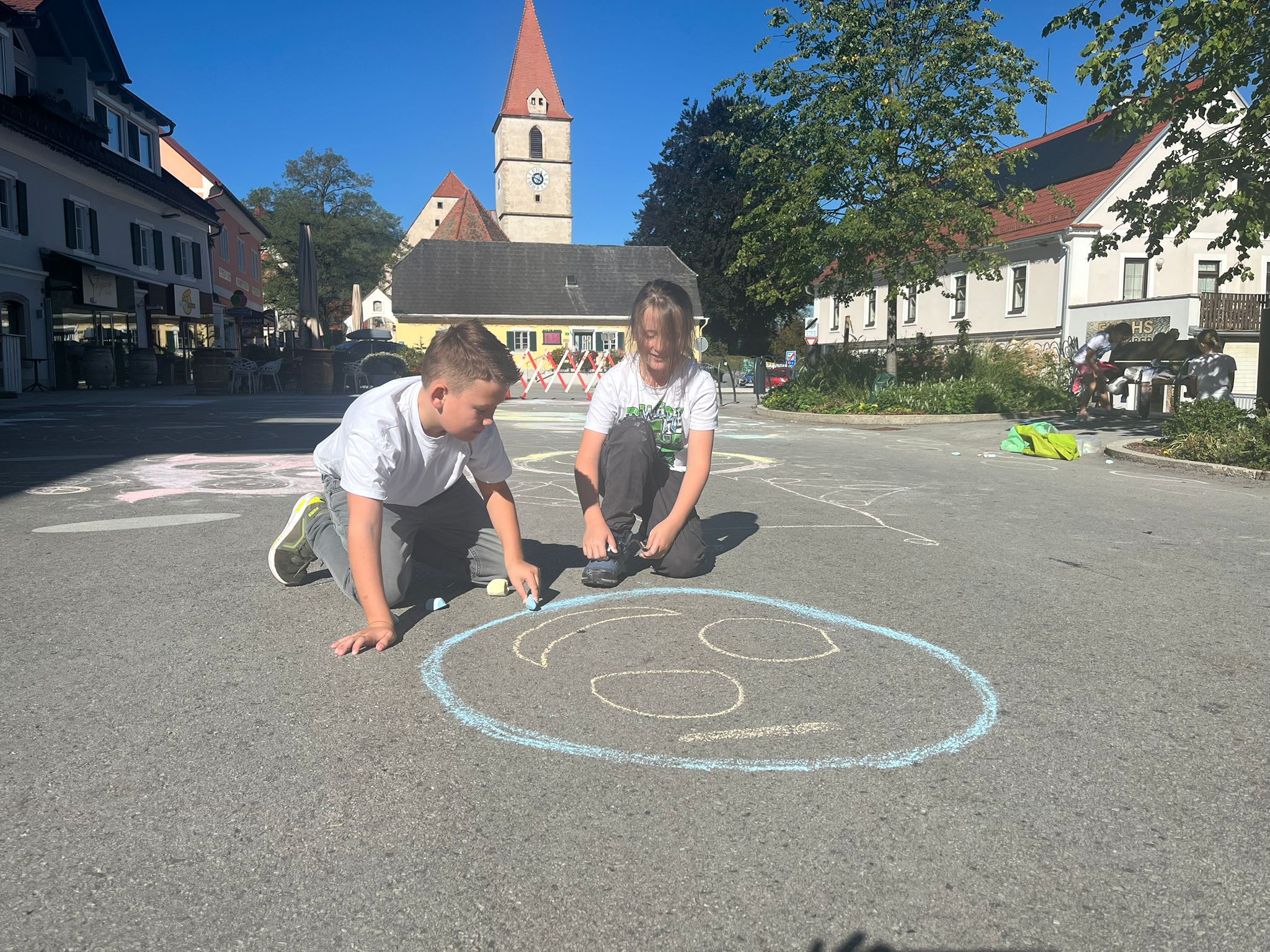 Am 16. September, zum Auftakt der Europäischen Mobilitätswoche, haben die Kinder der 4. Klassen der Volksschule Semriach den Marktplatz mit bunten Straßenkreiden gestaltet. Mit ihren farbenfrohen Zeichnungen machten sie darauf aufmerksam, dass im Straßenverkehr viele unterschiedliche Verkehrsteilnehmer unterwegs sind und gegenseitige Rücksichtnahme besonders wichtig ist. So wurde der Marktplatz nicht nur kreativ belebt, sondern auch zu einem Symbol für mehr Achtsamkeit im Alltag.