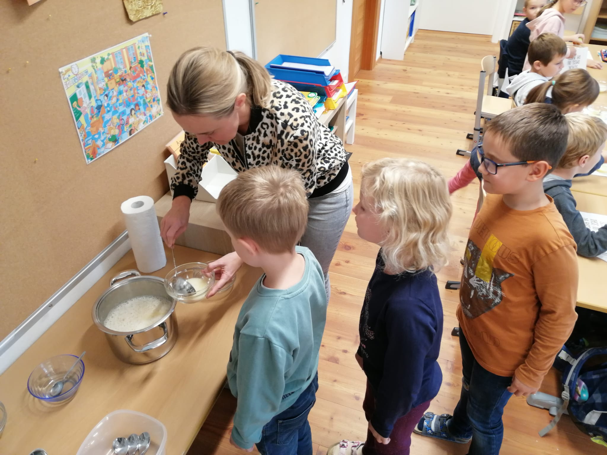 Die Kinder der 2a kochten mit viel Freude nach einem Rezept ihr eigenes Apfelmus. Das Ergebnis konnte sich sehen – und vor allem schmecken – lassen!