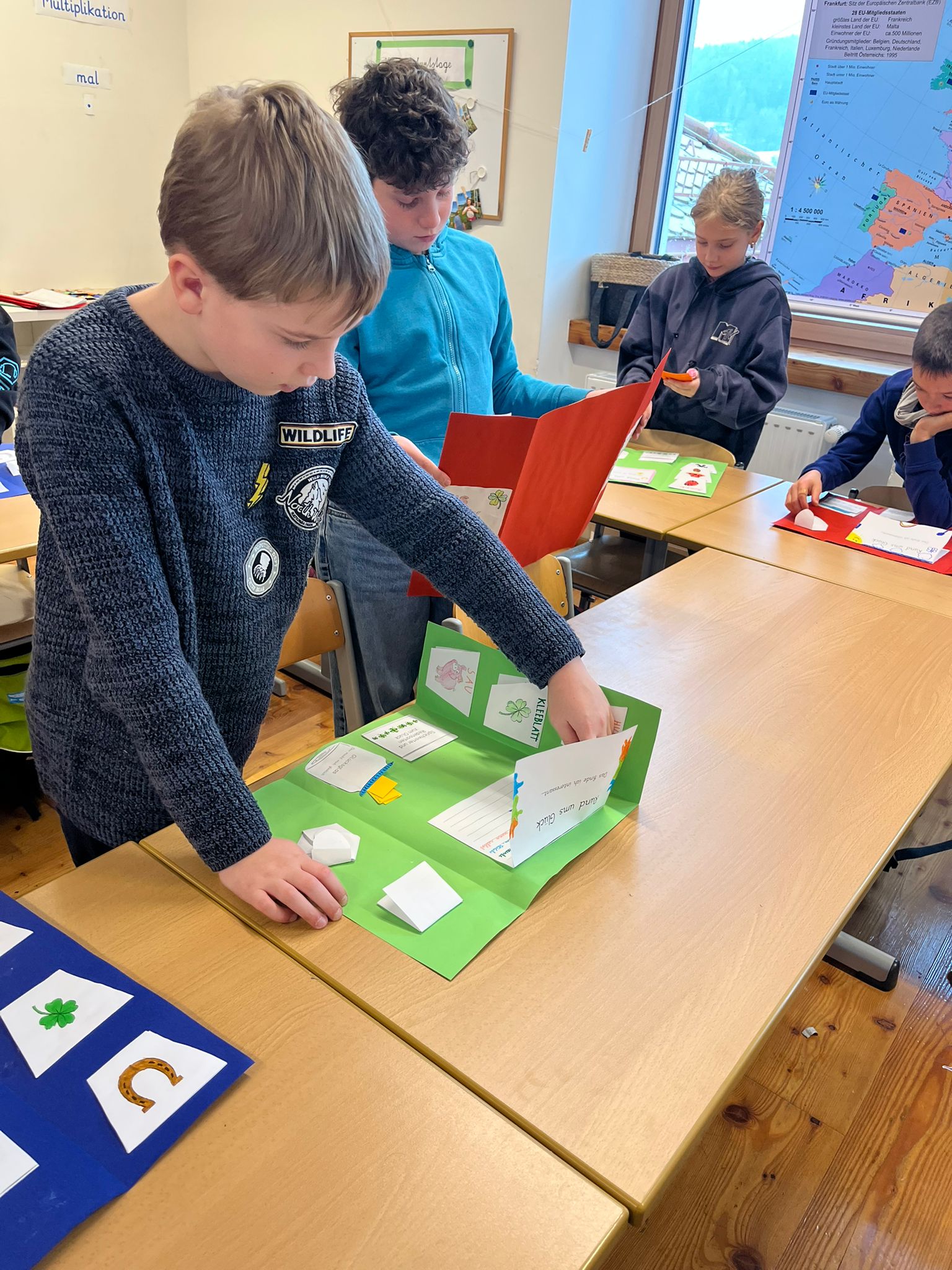 Die Kinder der 4a Klasse haben Lapbooks zum Thema Glück gestaltet. Mit viel Kreativität beschäftigten sie sich damit, was sie persönlich glücklich macht und was Glück bedeuten kann. Anschließend stellten sie ihre Lapbooks einander vor und gaben Einblicke in ihre Gedanken und Ideen.